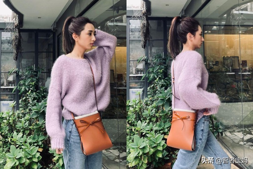 比如,這套甜美風上衣與牛仔褲的混搭,腳下的紅色、銀色拼色尖頭高跟鞋與精緻小包、妝發的全面女人味配合,才讓優雅休閒風實至名歸。