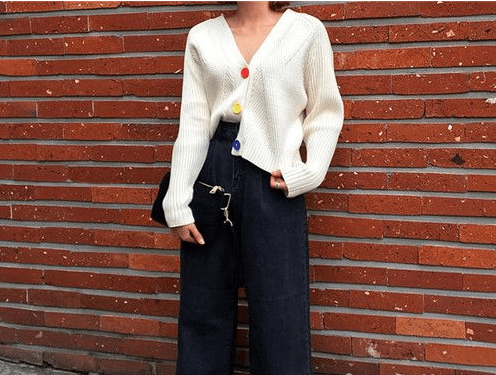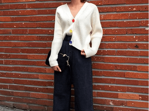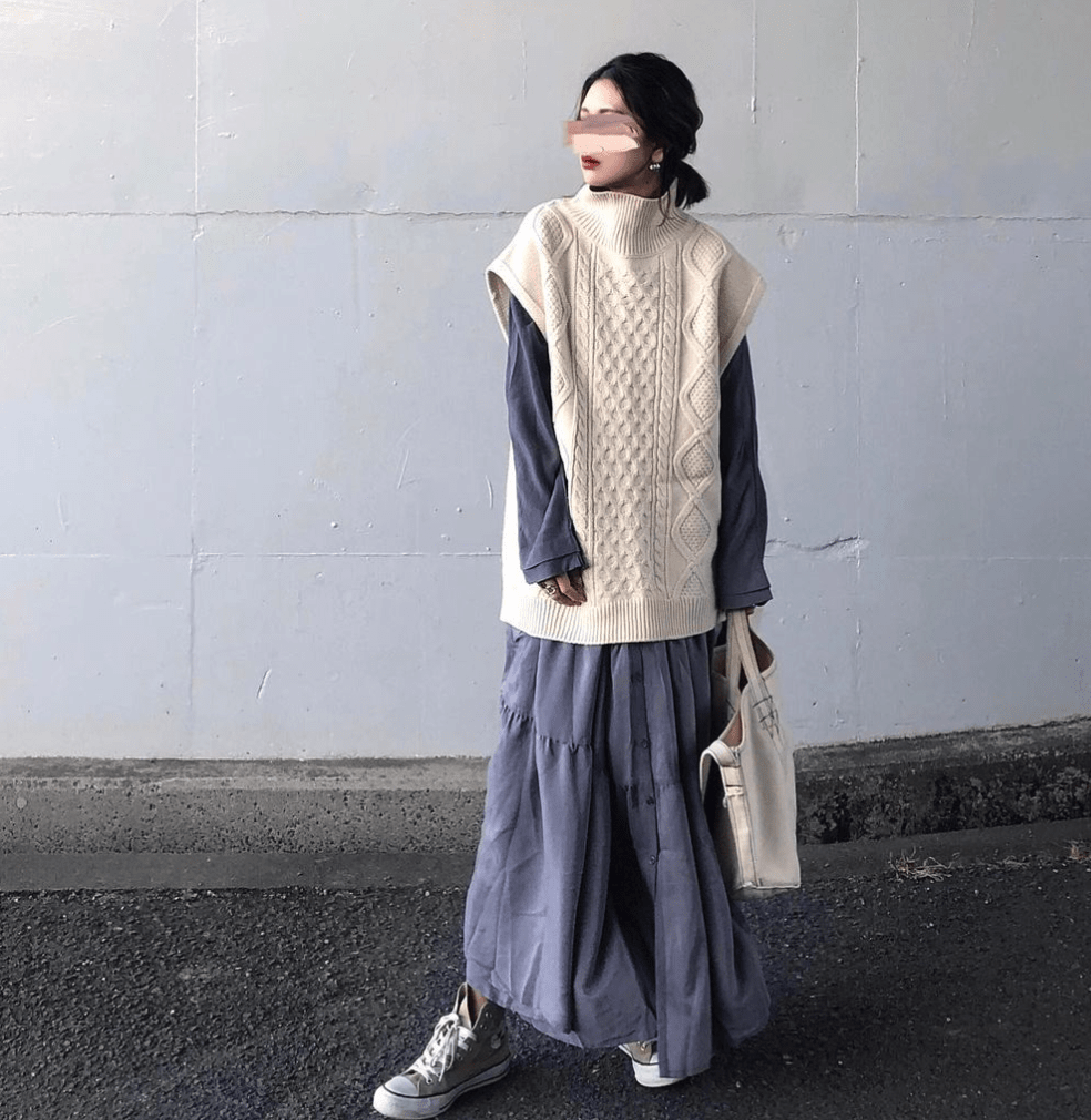 這條米白色蕾絲半身裙,全是柔情蜜意!搭配柔軟的針織衫調和,知性淺藍又與款式形成設計混搭,應景應時。