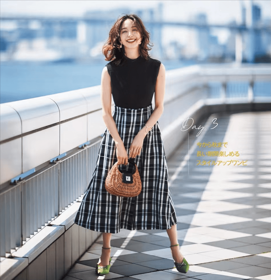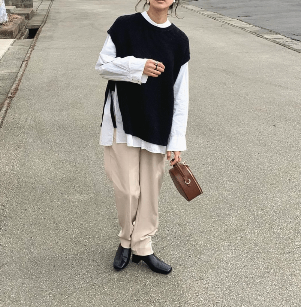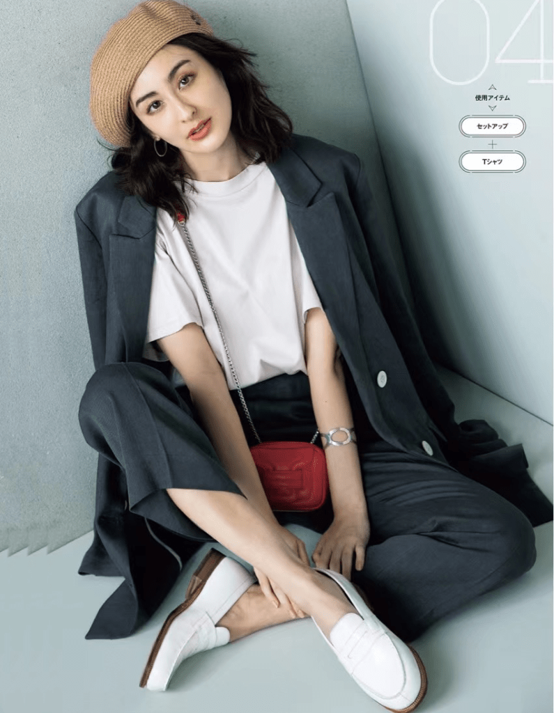 幹練為主、些許甜美元素調和,常出現在歐美極簡風穿搭裡。這類比例搭配,非常適合長相硬朗、氣質利落的直線型女人。
